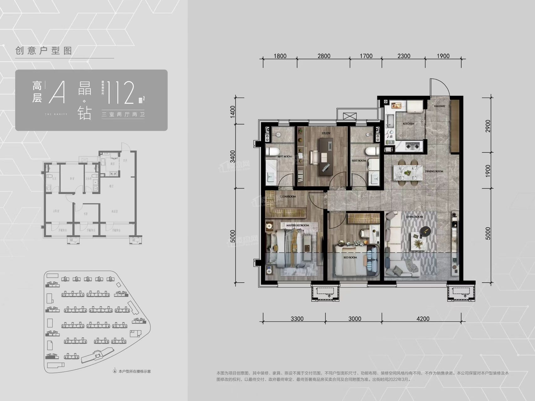 中海天钻共有5个户型,当前有5个户型在售,112㎡的3室、136㎡的4室、127㎡的3室、145㎡的4室、132㎡的3室。其中112㎡的3室的112户型特别受欢迎。该户型户型方正,南北通透,实用率高深受购房者的喜欢。具体户型情况如下